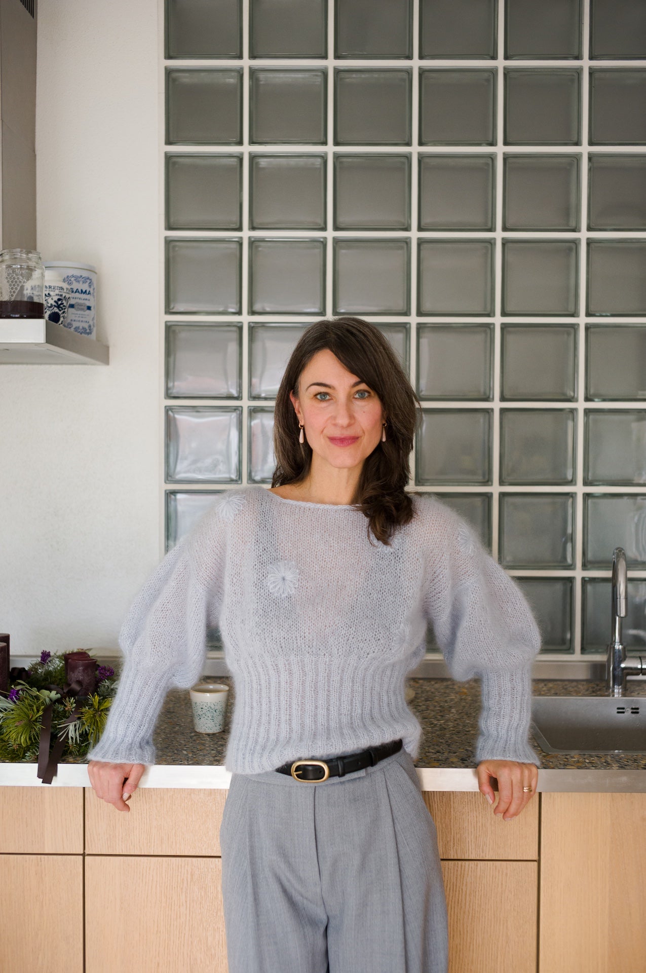 Der Angel Sweater wird vollständig von Hand aus einem Mohair-Seide MIx Garn gestrickt. Sein leichtes, flauschiges Material fühlt sich weich auf der Haut an und fällt in einer sanft femininen Silhouette. Zarte Details setzen einen dezenten, besonderen Akzent. Ein zeitloses, handgefertigtes Stück, soft und edel.